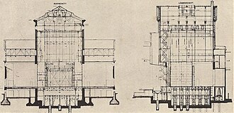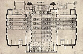 Following a major fire in 1923, the building of the National Theatre underwent a five-year process of renovation, when it received its present look, designed by the architect Martin Dülfer. In 1928 it was opened for shows with brand new technical stage equipment installed by the German companies Mann and Krupp. (English)
