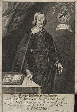 Joseph Furttenbach the Elder was a German architect, mathematician, engineer and diarist. From 1607 to 1620 he stayed in Italy, where he did an apprenticeship as a merchant under the supervision of his uncles. Moreover, he studied engineering, military architecture and grew an interest in theatre and stage design while abroad as well as festivals, processions, pyro technics and dramatic performances. Back in Germany, he had a successful career as an architect, universal engineer and writer. He designed a hospital, a waterworks system, a theatre, and houses. His cabinet of curiosities including models of scenic machinery was one of the most famous in Germany. A pious Lutheran, Furttenbach was at the same time an important cultural broker between Baroque Italy and Southern Germany. In three of his books, Architectura navalis 1629, Architectura universalis 1635 and Architectura recreationis (Q61) 1640 he gathered the architectonical and technical knowledge of his time and wrote expositions on scenery and lighting for the theatre.