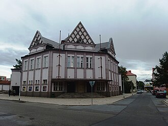 Built 1927-1928 as theatre and cinema Licht- und Schauspielhaus by Leo Kammel for the city of Jägerndorf. Also known as Stadttheater. Opened 11 Nov 1928 with a prologue by mayor Andratschke and an opera by Franz Schubert (probably Rosamunde). Originally 800 seats, later: 1009 seats. (English)