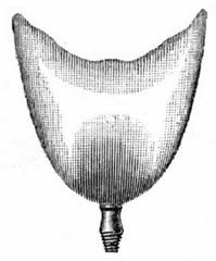 Two holes drilled at 90° to each other yield this flame in the shape of a fishtail, hence the name of the burner, also called a Union Jet burner. Metal or steatite. (English)