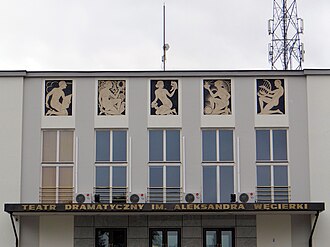 Built by Jarosław Gerycz. Opened 27 Dec 1938 as Teatr miejski - Dom Ludowy im. Marszałka Józefa Piłsudskiego (Municipal Theatre - People's House named after Marshal Józef Pilsudski). 1949 renamed in honour of the Polish actor and theatre director, Aleksander Wegierko (1893-1941). The building contains a main theatre hall (496 seats) and a chamber theatre (100 seats). (English)