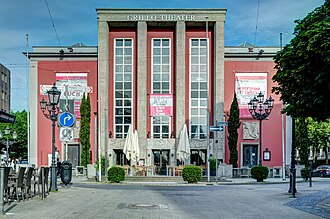 Built 1890-1892 as Stadttheater by Heinrich Seeling. Opened 16 Sep 1892 with Gotthold Ephraim Lessing's Minna von Barnhelm. 750 seats. Severely damaged by bombs in 1944, with the auditorium and entrance tract completely destroyed. 1949-1950 rebuilding by Johannes Borsch and Wilhelm Seidensticker to new designs, using the stagehouse part of the former theatre, but without reconstructing the destroyed cupola roof. Re-opened 19 Dec 1950 with Richard Wagner's Die Meistersinger von Nürnberg. 1990 interior rebuilding by Werner Ruhnau (400 seats). Re-opened Sep 1990 with Shakespeare's A Midsummer Night's Dream. Renamed in honour of the German industrialist Friedrich Grillo (1825-1888) who had donated most of the funds for the original building. Used for drama performances by the resident municipal theatre company. (English)
