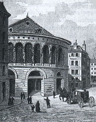 Built by Jacques-Guillaume Legrand and Jacques Molinos. Opened 6 January 1791 as Théâtre de Monsieur. Renamed Théâtre français et Opera-buffa in June 1791. 1795 renamed Théâtre français de la rue Feydeau, 1798 renamed Théâtre lyrique de la rue Feydeau. From 16 Sep 1801 main venue of the Théâtre national de l'Opéra-Comique company. Closed 12 Apr 1829. Subsequently demolished. (English)