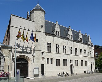 Built from 1477 as the palace of Margaret of York, on the site formerly occupied by the palace of the bishops of Cambrai. 1486 sold to the city of Mechelen. Subsequently used as a palace by the Habsburg princess, Margaret of Austria. 1611 ceded to the Jesuites. After the the elimination of the Jesuite religious order, used as a home for retired or invalid soldiers. Later converted into a theatre. (English)