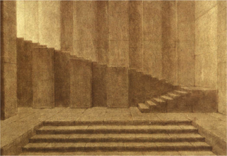 As early as 1906, Adolphe Appia (Q249), after attending a public demonstration of rhythmic gymnastics, had written a letter to Dalcroze expressing his intention to create spaces suitable for the development of the movement of the dancers’ bodies. Between 1909 and 1910, Appia drew ‘feverishly’ (as he put it in a letter he sent to Dalcroze) his rhythmic spaces, from which he selected twenty to send to Dalcroze. They are austere architectures, which breathe a certain classicism and which are made, in Appia’s words, for the ‘enhancement of the human body under the orders of music. With no other destination’.
